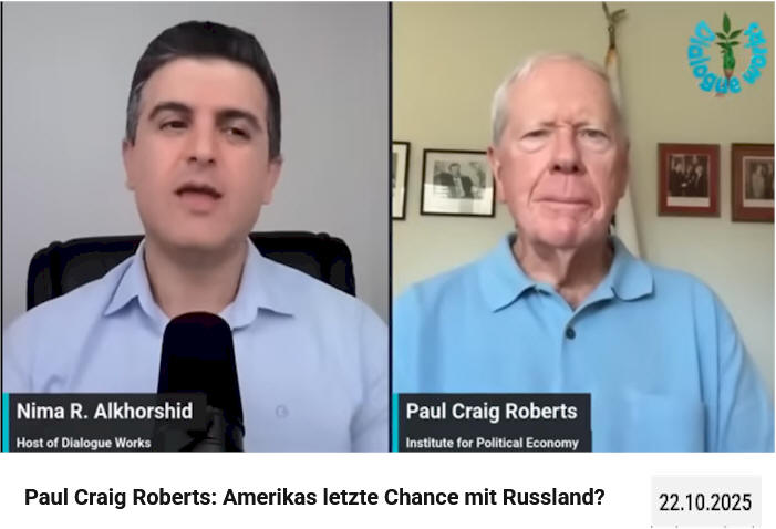 dialogworks, 11.102025 / ![]() Paul Craig Roberts i. Ökonom und Ehemaliger US-Unterstaatssekretär im Finanzministerium für Wirtschaftspoliti |