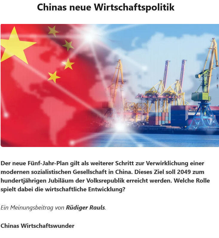 erweis auf kontrafunk # Wirtschaft und Gesellschaft: Chinas neue Stärke - In letzter Zeit drängt sich das Bild auf, dass der chinesische Drache erwacht sei. Der Drache steht im chinesischen Denken für Reichtum, Glück, für Güte und Intelligenz. Abseits der Poesie ist China inzwischen in der Lage, die USA herauszufordern, mit den Vereinigten Staaten um die weltpolitische und weltwirtschaftliche Führungsrolle zu kämpfen. Nüchtern betrachtet befinden wir uns in einem Kalten Krieg zur Erringung der Vorherrschaft, einen Krieg, an dem wir zwar beteiligt sind, auf den aber Deutschland und Europa wenig Einfluss haben. Über die Wirtschaftskraft Chinas berichtet Uwe Leuschner, der als Logistiker in China gelebt und gearbeitet hat, so auch für die Deutsche Bahn, und das Reich der Mitte nicht nur vom heimischen Schreibtisch kennt. | Klaus-Rüdiger Mai im Gespräch mit Uwe Leuschner |