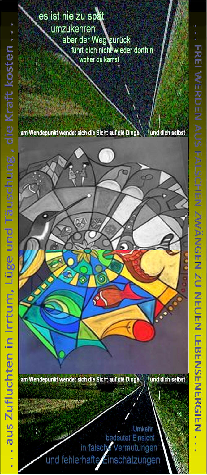 ._____________________ . . . . Und in dem Gehen und in dem Weben und in dem Blühen und im Vergehn will ich das Leben, das mir gegeben, will mich verwandeln und will verstehn - Und in dem Gehen und in dem Weben und in dem Blühen und im Vergehn will ich das Leben, das mir gegeben, will mich verwandeln und will verstehn - . Es geht hinein - es geht hinaus - es wandelt sich tagein und tagaus - es zieht vorbei in seiner Zeit und bringt herbei die Ewigkeit, es zieht vorbei in seiner Zeit und bringt herbei die Ewigkeit. . . Und jeder Schritt bringt dich zurück hin zu dir selbst - jetzt im Augenblick - der zeigt von neuem dir deinen Weg: hier ist das Leben, das du gewählt, der zeigt von neuem dir deinen Weg: hier ist das Leben, das du gewählt. . . . Und in dem Gehen und in dem Weben und in dem Blühen und im Vergehn will ich das Leben, das mir gegeben, will mich verwandeln und will verstehn - Und in dem Gehen und in dem Weben und in dem Blühen und im Vergehn will ich das Leben, das mir gegeben, will mich verwandeln und will verstehn - . Manchmal erscheint der Weg dir zu weit, wo du doch zum Ziel so entschieden geeilt - soviele Runden bist du gebunden und soviel Wandel musst du überstehn - soviele Runden bist du gebunden und soviel Wandel musst du überstehn. . . Schaust du nach vorn, fürchtest du oft, dass dein Weg dort endet - ganz unverhofft - Doch stehst du da, öffnet sich eine Tür, und durch die Wendungen wirst du geführt - Doch stehst du da, öffet sich eine Tü, und durch die Wendungen wirst du geführt. . . . Und in dem Gehen und in dem Weben und in dem Blühen und im Vergehn will ich das Leben, das mir gegeben, will mich verwandeln und will verstehn - Und in dem Gehen und in dem Weben und in dem Blühen und im Vergehn will ich das Leben, das mir gegeben, will mich verwandeln und will verstehn - . Mal läufst du schnell, mal bleibst du stehn, mal mühst du dich einfach, nur weiterzugehn - dein Herz und Verstand sind oft wie Katz und Hund und nur die Seele macht sie gesund - dein Herz und Verstand sind oft wie Katz und Hund und nur die Seele macht sie gesund. . . Bist du dann am Ziel, wirst du gewahr, du stehst am Anfang nun wieder da - Im Kosmischen Spiel ´GEBURT - LEBEN - TOD´ ist LEBEN ZU LERNEN das höchste Gebot - Im Kosmischen Spiel ´GEBURT - LEBEN - TOD´ ist LEBEN ZU LERNEN das höchste Gebot . . . . Und in dem Gehen und in dem Weben und in dem Blühen und im Vergehn will ich das Leben, das mir gegeben, will mich verwandeln und will verstehn - Und in dem Gehen und in dem Weben und in dem Blühen und im Vergehn will ich das Leben, das mir gegeben, will mich verwandeln und will verstehn - Und in dem Gehen und in dem Weben und in dem Blühen und im Vergehn will ich das Leben, das mir gegeben, will mich verwandeln und will verstehn - will mich verwandeln und will verstehn - will mich verwandeln und will verstehn - . .(Iria) . . . radiomünchen, 7.2,2022 / - zum Hören: