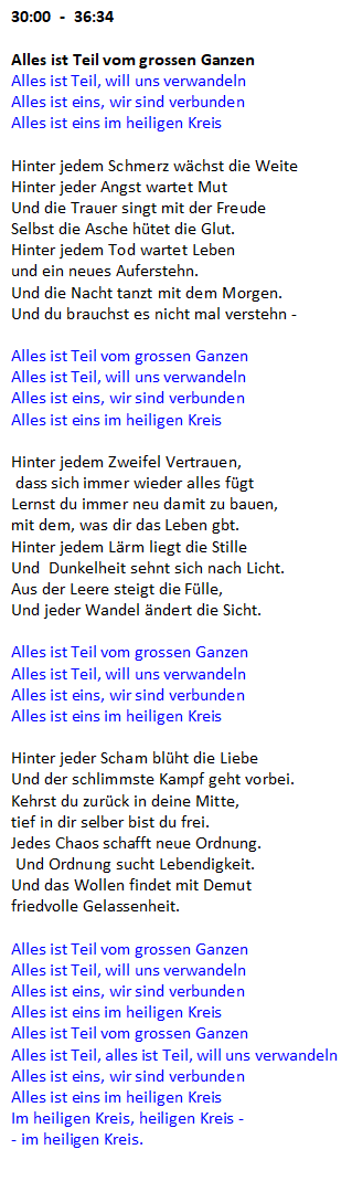 . . ANTWORTEND UND IN WECHSELSEITIGEM SCHWINGEN . - IN NIEMALS VOLL AUSLOTBAREN KOMMUNIKATIONSSPIELEN UND LEBENDIGEN WIRKGEFÜGEN - . WANDLUNGEN ERFÄHRT UND SOLCHE SCHAFFT . . . , . . . . die unsere ganze E h r f u r c h t verdienten ! . - nicht in erster Line, weil dabei auch Beängstigendes unausweichlich mit am Werk ist, das kein Gegenwehr-Unterfangen je aus der Welt wird schaffen können . . . . - sondern nicht zuletzt deshalb, weil uns die Erfahrung lehrt, dass es unter uns Menschen dort am Beängstigendsten zuzugehen pflegt, wo wir uns aufs Ä c h t e n verlegen, . w e i l wir die LEBENDIGKEITS-FROHE ACHTUNG VOR DER UNVERZICHTBAREN WIRKKRAFT VON WIE IM EINZELNEN IMMER ANDERSARTIGEM . .