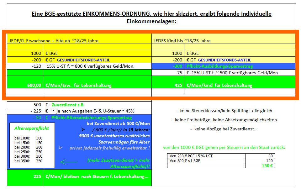 ein BGE von derzeit 1000 €/Mon/Einwohner/in an (jede/n